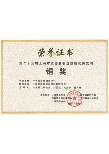 第二十三屆上海市優秀發明選拔賽優秀發明銅獎