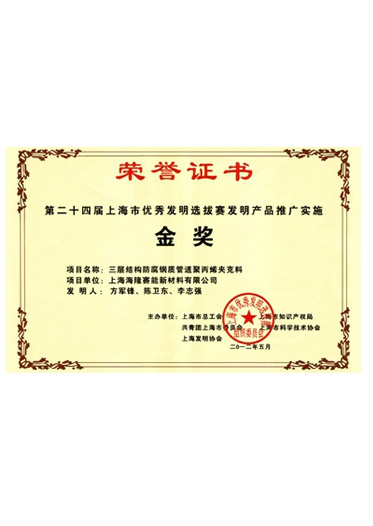 第二十四屆上海市優秀發明選拔賽發明產品推廣實施金獎
