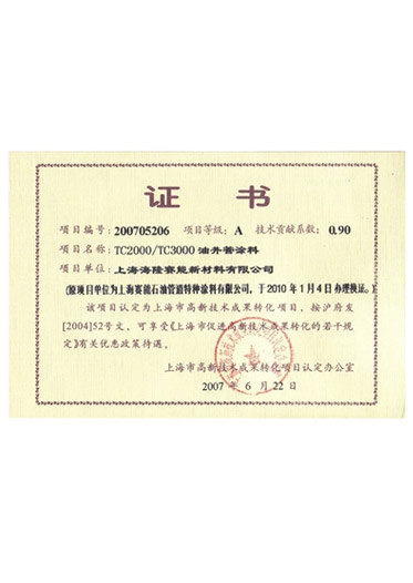 TC2000/TC3000油井管涂料上海市高新技術成果轉化項目