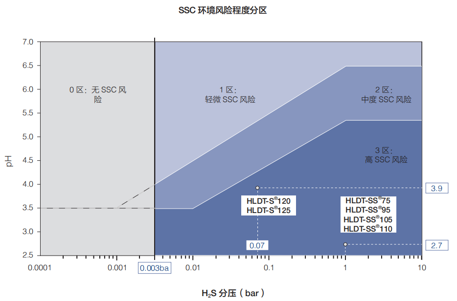 · HLDT-S®120、HLDT-S®125 高強度抗硫鉆桿,同時滿足高強度及抗硫化氫,可用于中度 H2S 腐蝕環境的深井、超深水平井作業。