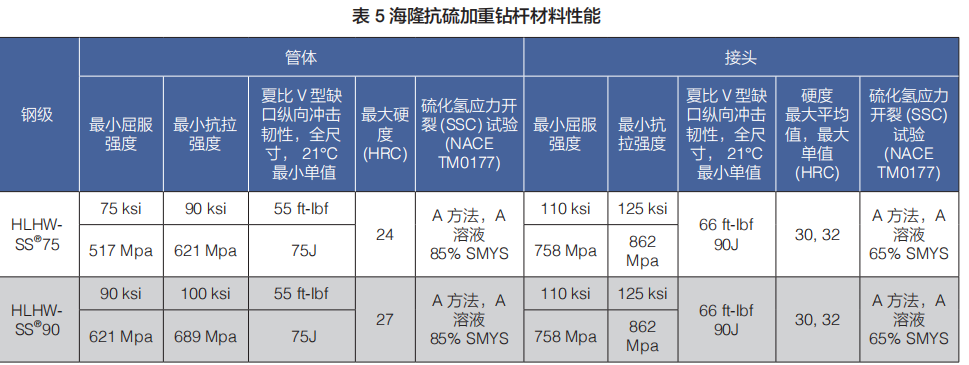 (b)焊接加重鉆桿包括:標準強度焊接加重鉆桿、高強度焊接加重鉆桿、抗硫化氫加重鉆桿和海隆特殊扣加重鉆桿;