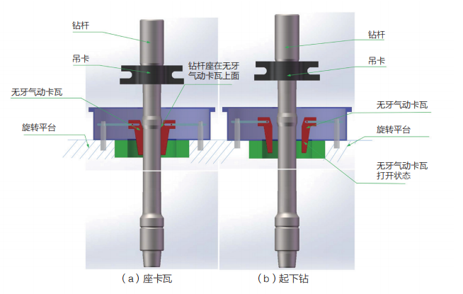 ·將傳統的雙吊卡起下鉆過程轉變成單吊卡起下鉆,無需頻繁的摘、掛吊卡,同時接頭位置提高,上卸扣更加方便,減輕工人勞動強度,提高作業安全性;